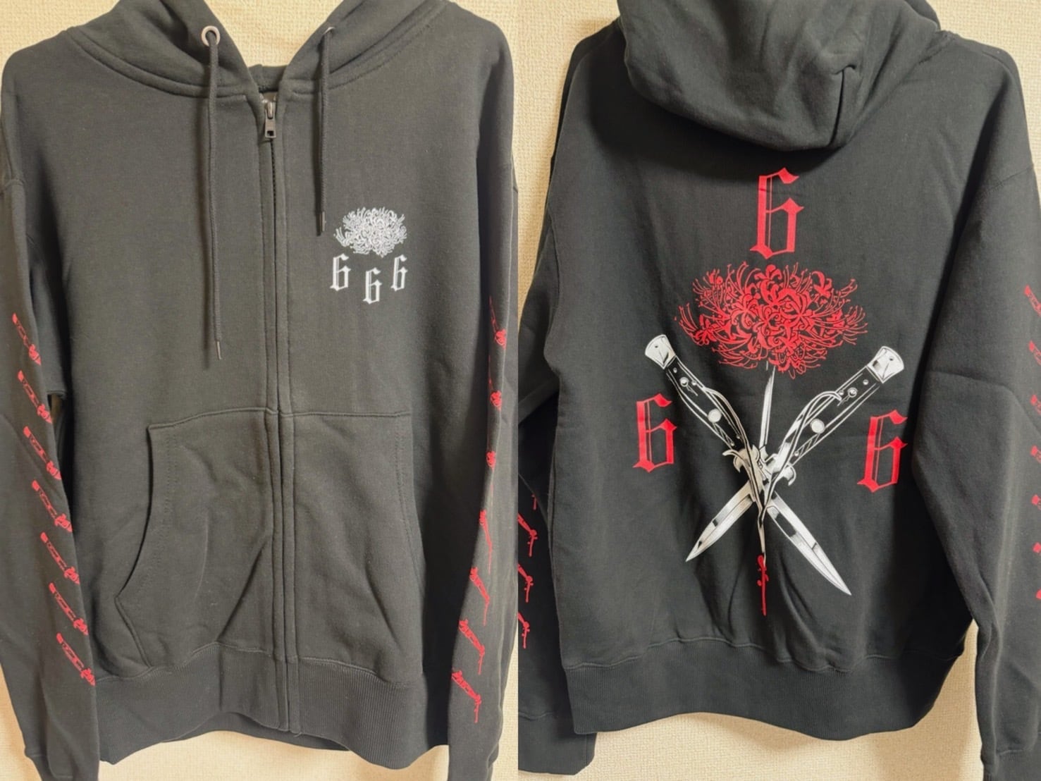 666 公式モチーフ 彼岸花とナイフ 2025ver. ジップアップパーカー